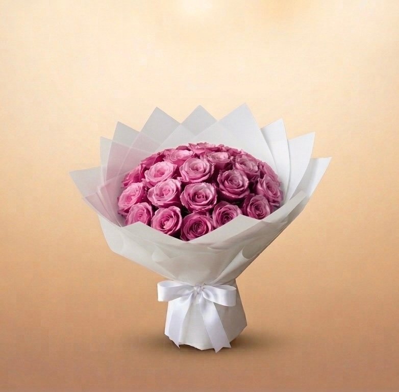 The Blush Bouquet captures the softest, most tender dimension of the rose in a generous arrangement of dusky mauve-pink blooms. Each stem carries that beautiful in-between colour — neither fully pink nor fully lilac — that feels both romantic and effortlessly sophisticated. Wrapped in our signature white tissue paper and finished with a satin ribbon, this bouquet speaks the language of gentle affection, admiration and the loveliest kind of love. Prepared fresh to order at V60 Bloom, Jumeirah.